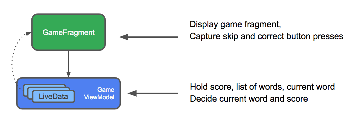 - 데이터 필드와 메서드를 GameFragment에서 GameViewModel로 이동한다.